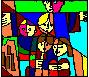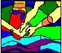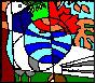 These banners hang at the front of our churchand were made by the members of the congregation. The banners, design by Willem Hart, are made from nylon sail cloth appliqued on heavy white dacron and outlined in black. Up to 30 volunteers worked on the banners which were completed in an amazing three week period.
