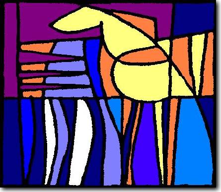 In the first panel we see once again the hand of God, here pouring water over what is below. Just as the hand of God symbolized creation in the very first panel, so here ‘too God’s hand represents the ‘new creation’ the new life which God gives to us in Baptism. Whenever our baptism took place, it is not just an event in our past-our baptism has implications for our life today. Our baptism means that every day we have a brand new opportunity, a fresh start, at following Christ; every day our sins and failures are taken away, and we are challenged anew to follow Christ’s example of sacrificial love. “We have died (to ourselves) through baptism with Christ in order that, just as Christ was raised from the dead, we too may live in newness of life” (Romans 6:4).