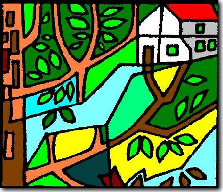 The various buildings in the second and third panels, a house and office/apartment buildings show how our life in Christ becomes involved in our community and our society at large. The Tree of Life extends into our day-to-day world, which means there is no separation between ‘spiritual’ and ‘worldly’ aspects of the Christian life. By putting Christ’s love into practice in deeds of compassion and justice we implement our Christian faith, becoming ‘little Christs’ to one another.